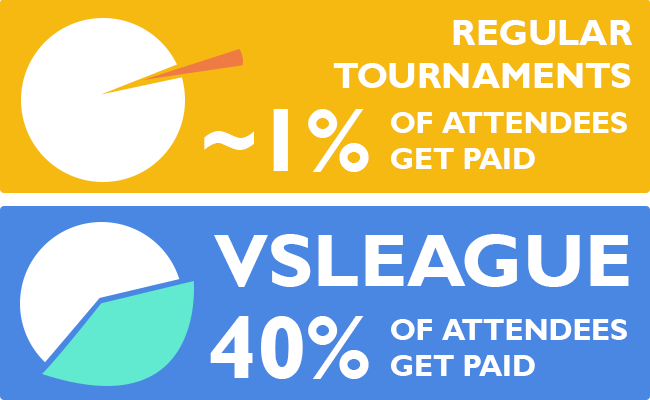 La répartition du cashprize par VSLeague permet de répartir de manière plus équitable les recompenses, et donc d'espérer un retour sur investissement quand certains participants redépensent une partie de leurs gains dans l'univers de votre marque.